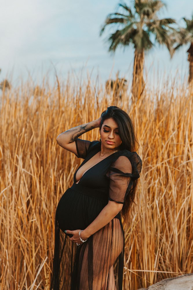 We scheduled her maternity photos at Papago Park, in Phoenix, Arizona. Papago Park is a fun little park with several ponds, short, easy trails, and offers access and views of Hole in the Rock. It provides a few different options with water, reeds, beautiful rocks and desert vibes, and even some brick wall options. It’s very user friendly, and accessible for anyone who may have problems walking long distances, or cannot hike strenuous areas.