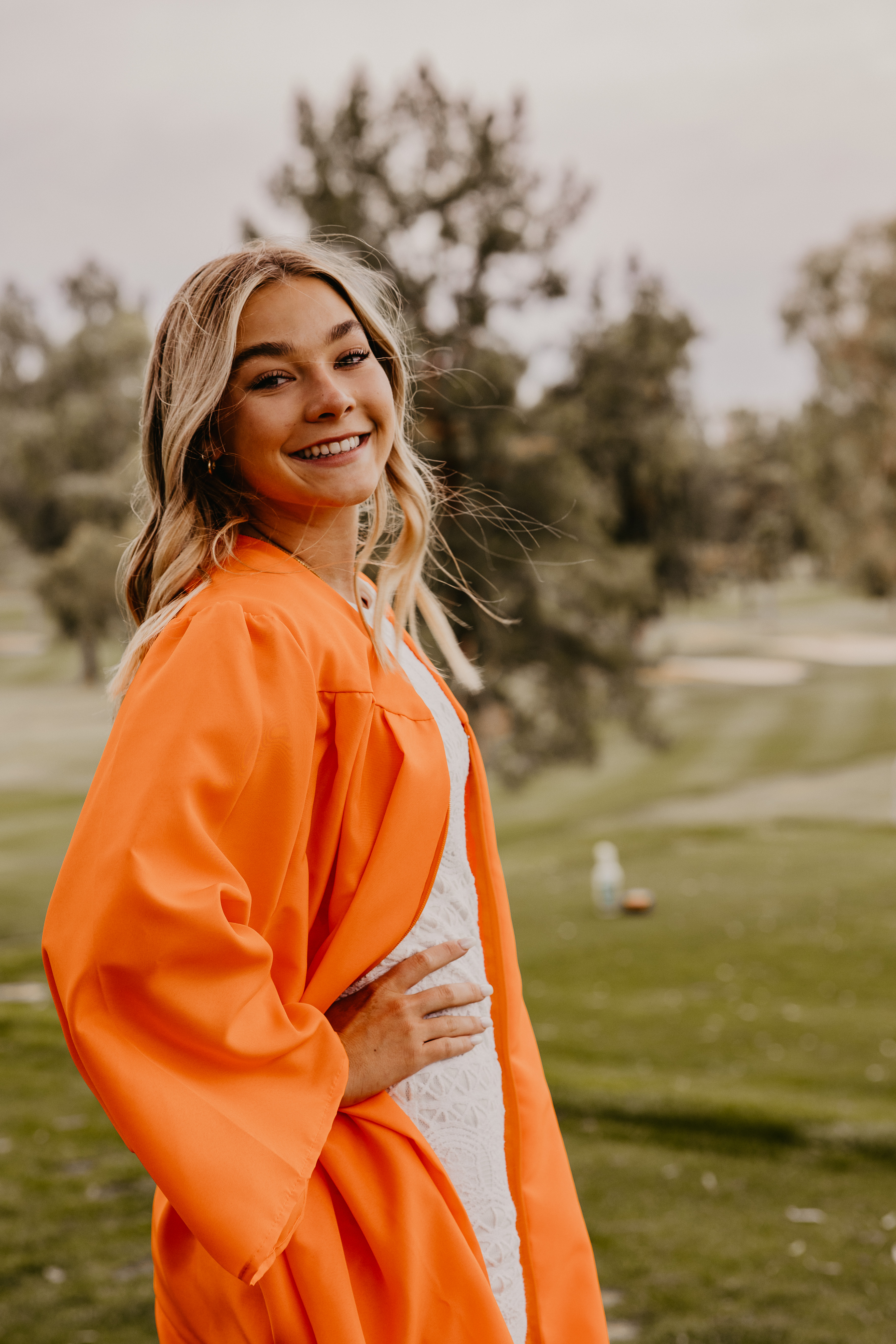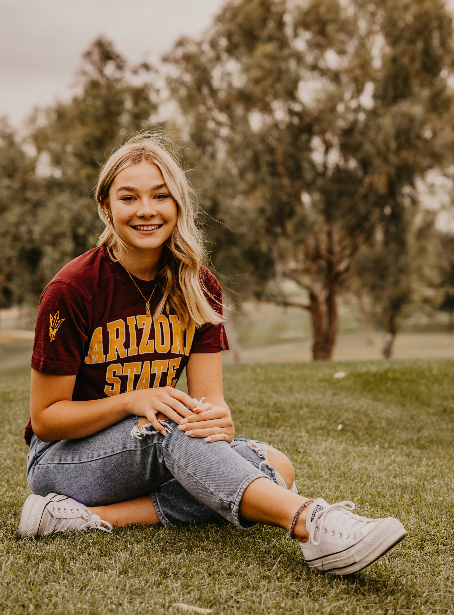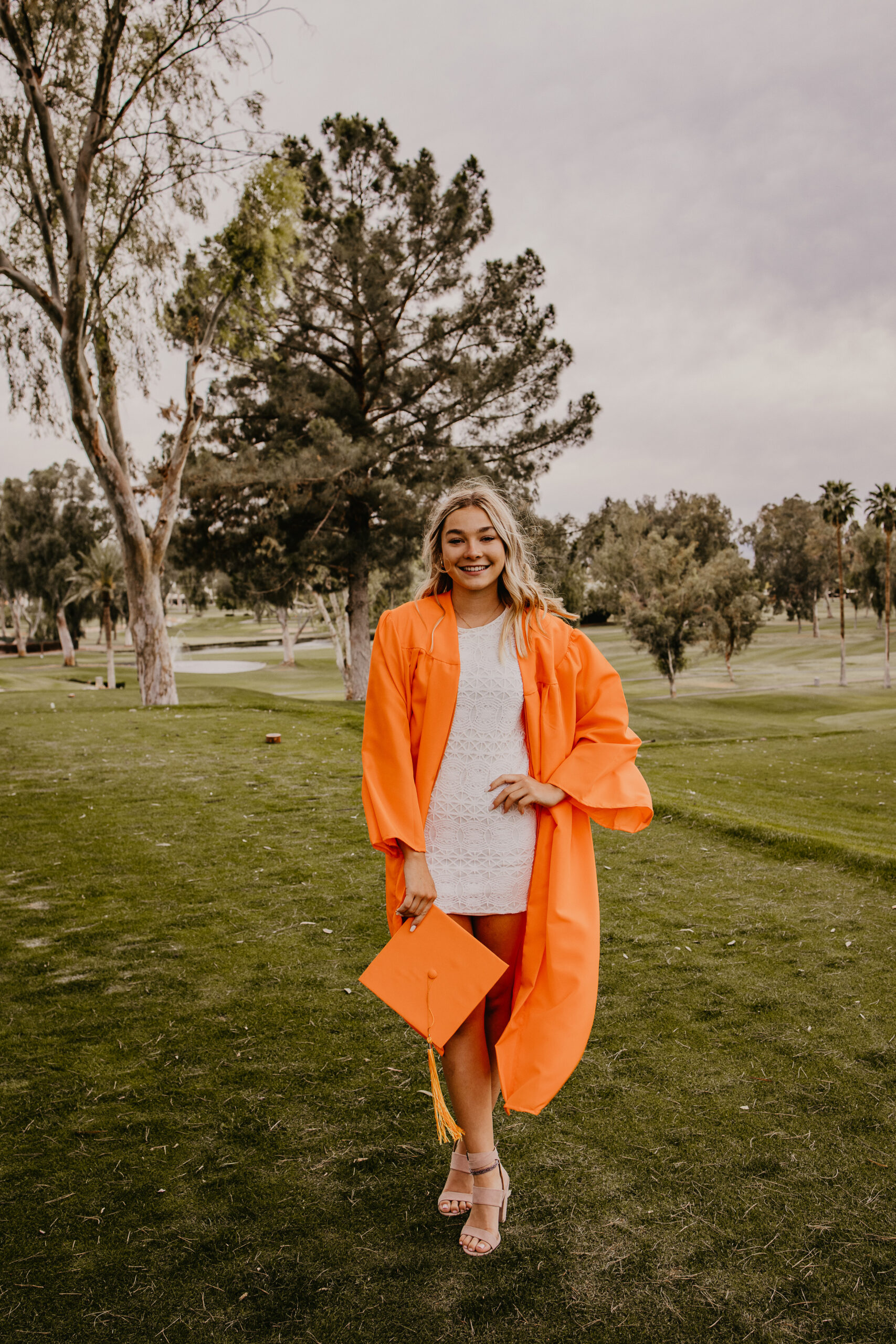 When Caroline’s dad contacted me for availability to do his daughter’s senior portraits, he mentioned she wanted something a little different than the typical desert and cactus setting. We were up against a tight deadline and wanted to do something local, so traveling north to Sedona or Flagstaff was out of the question.  Wanting to highlight something more green than the desert browns, we decided to shoot Caroline’s senior portraits at a local golf course in Mesa, AZ.