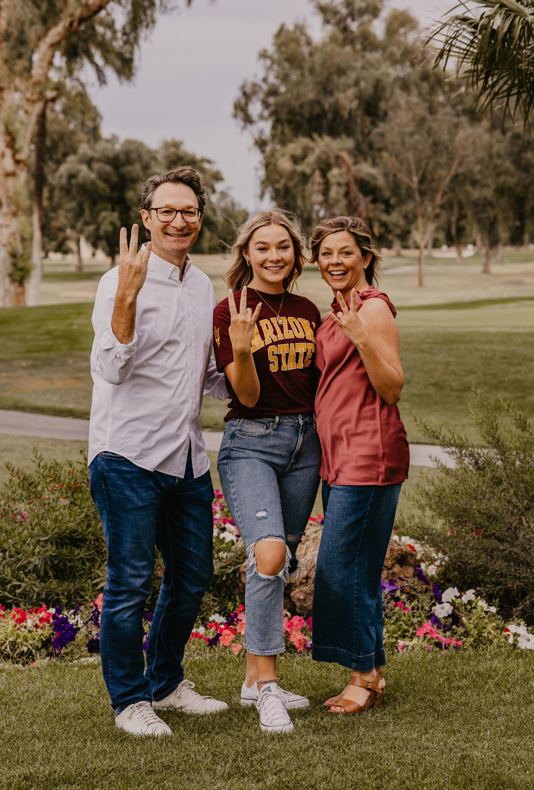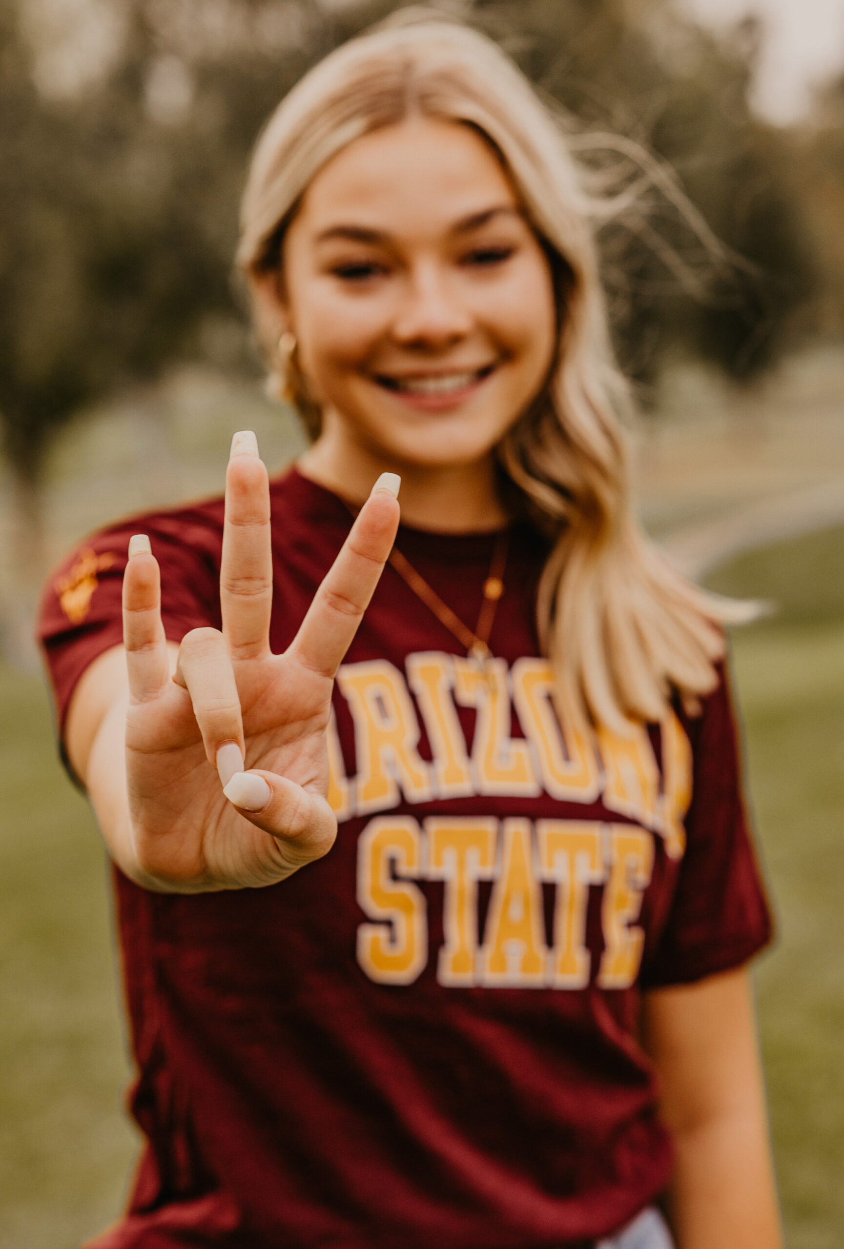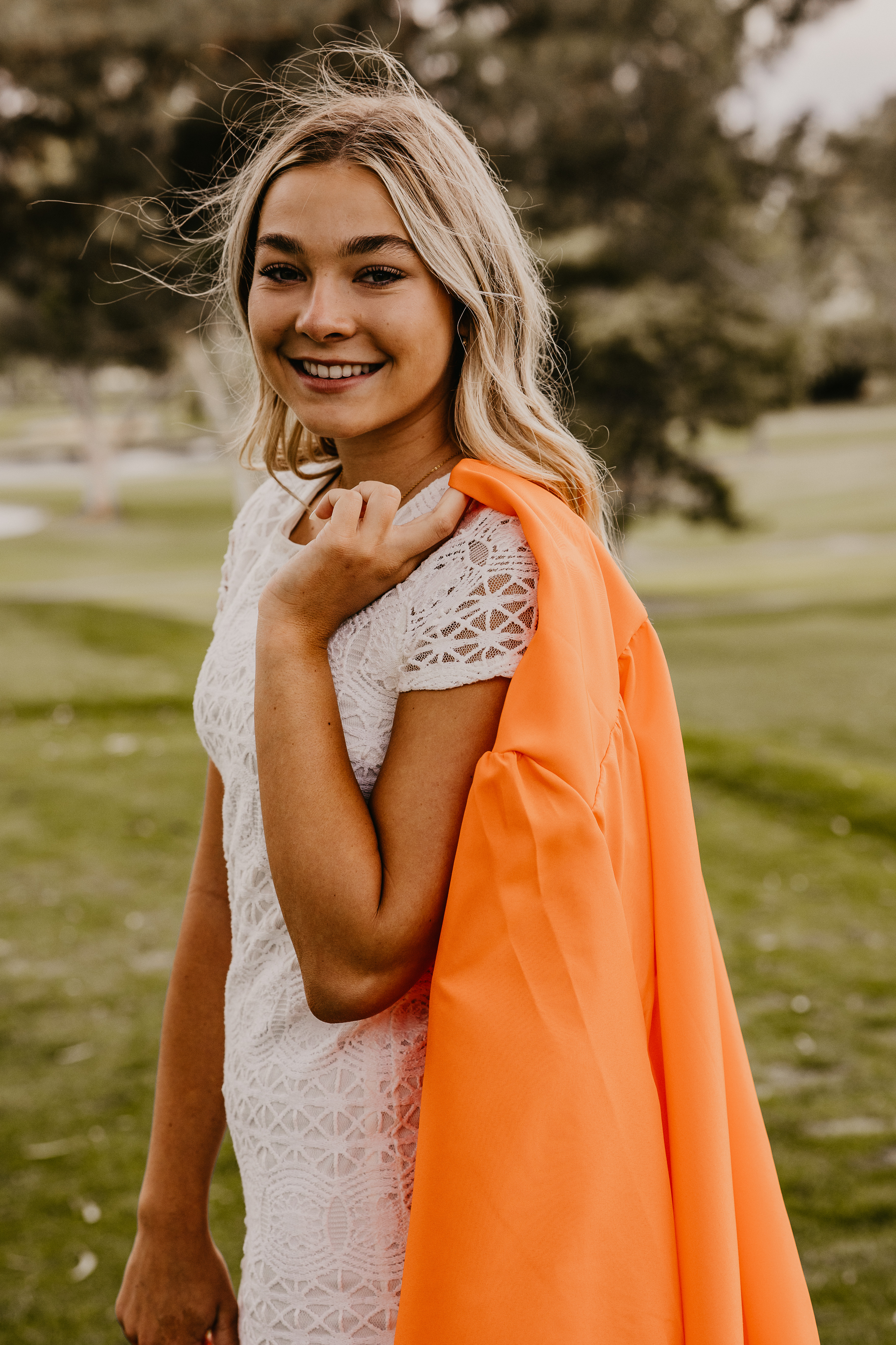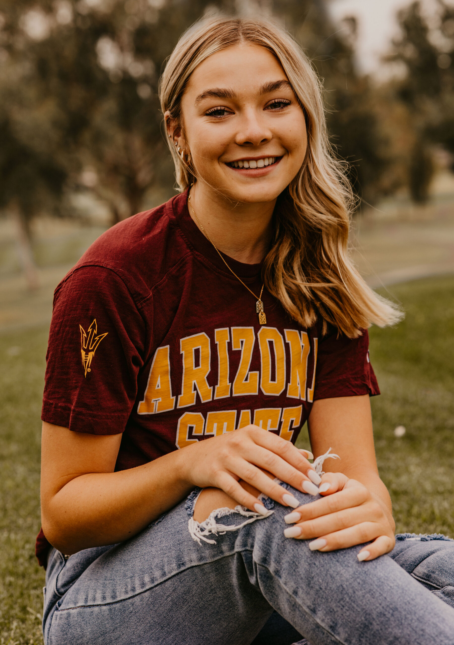 When Caroline’s dad contacted me for availability to do his daughter’s senior portraits, he mentioned she wanted something a little different than the typical desert and cactus setting. We were up against a tight deadline and wanted to do something local, so traveling north to Sedona or Flagstaff was out of the question.  Wanting to highlight something more green than the desert browns, we decided to shoot Caroline’s senior portraits at a local golf course in Mesa, AZ.