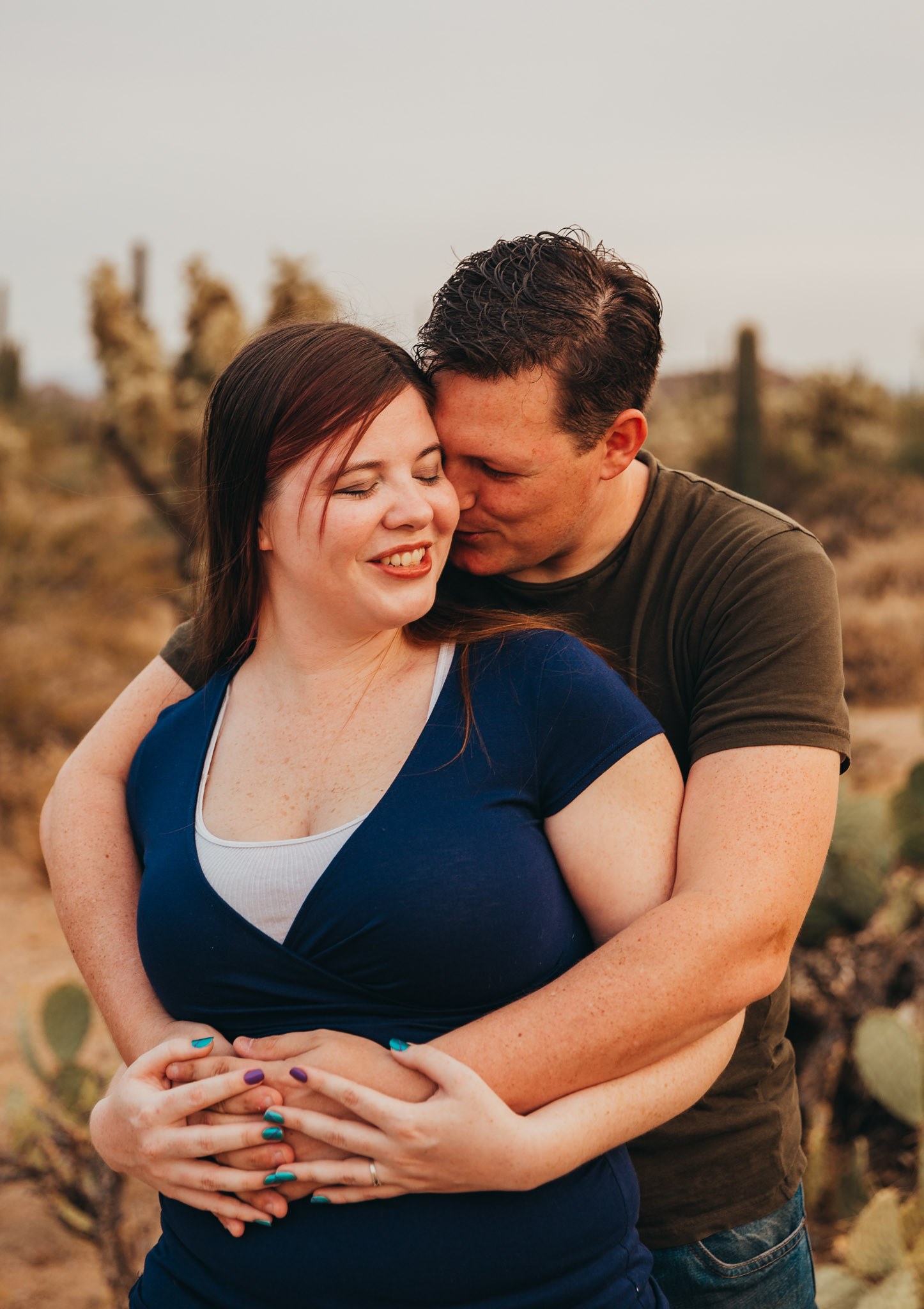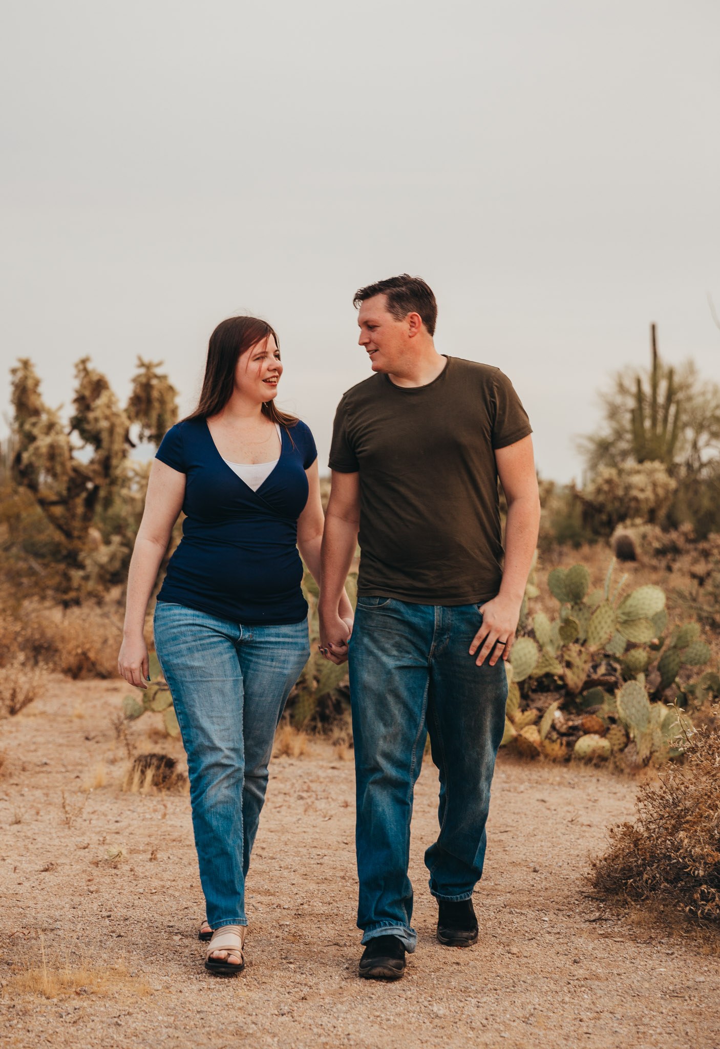 We planned our shoot for an evening before sunset (if you’ve read any of my other blogs, you’ll know that’s when I like to shoot), at Usery Mountain Regional Park. If you’ve never been there, it’s a beautiful location with some great hiking trails, views of Phoenix, and makes for a great desert scene for portrait photography. It’s become one of my favorite places to go shoot at, because of the beautiful scenic desert backdrop, and the ease of getting around (no need for strenuous hikes). It’s great for all types of portraits including maternity, family photos, and senior portraits.