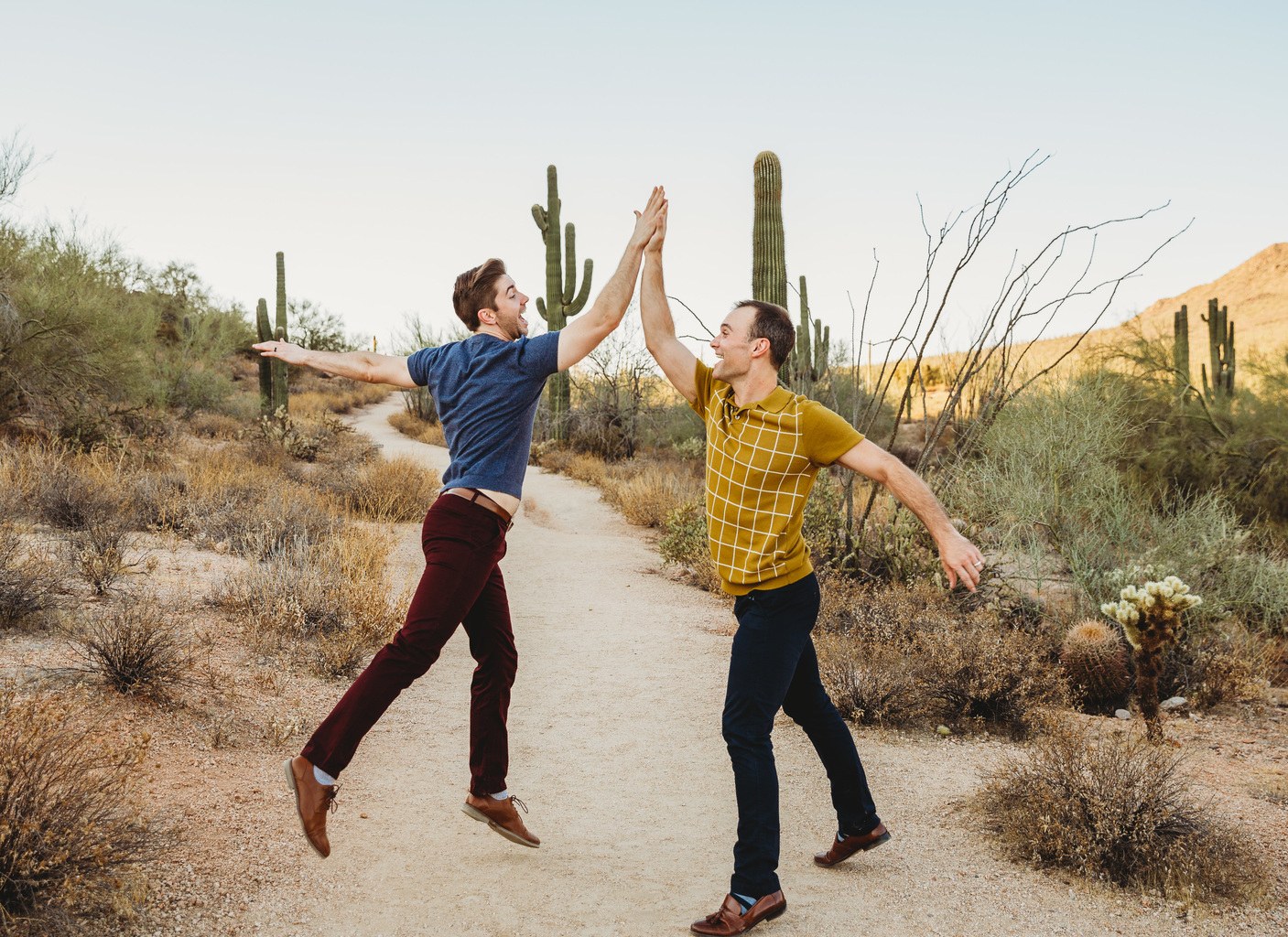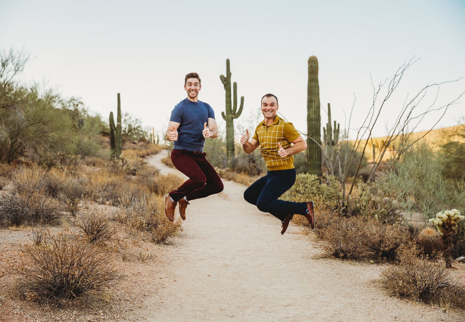 Jamie was doing a search for local photographers for his phoenix engagement session, and stumbled upon my website, almost by accident. It just so happens he found a page that isn’t normally live on my site. I couldn’t be more excited that he did. We shared an initial couple of laughs through email over the story, and we got to know each other a little better. Jamie told me more about himself and his partner, Stephen. He told me about how they moved to Arizona, met in Peoria in January of 2016 doing a production of Fiddler on the Roof, and have been together ever since.  He told me a little bit of how they want their wedding to be a little different than traditional weddings, with a focus on fun, games, and conversation.  They wanted to create an experience, and lasting memories. That’s the approach I take towards photography.  I knew we’d be a great match for each other.