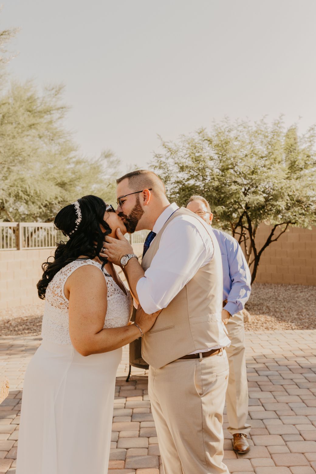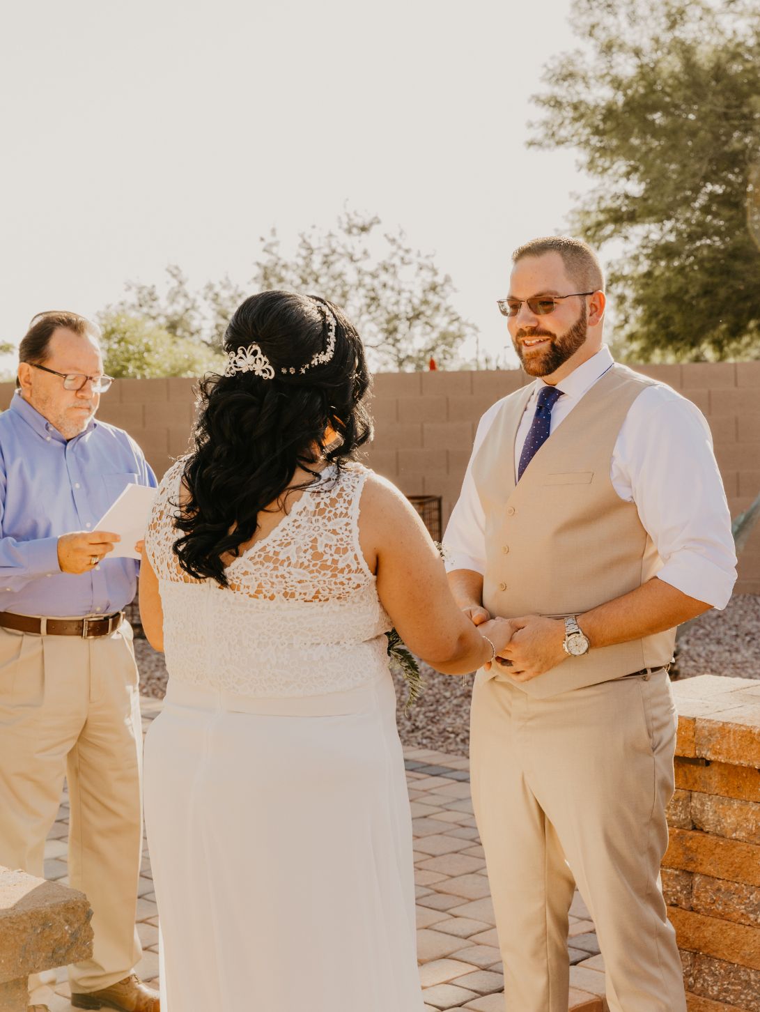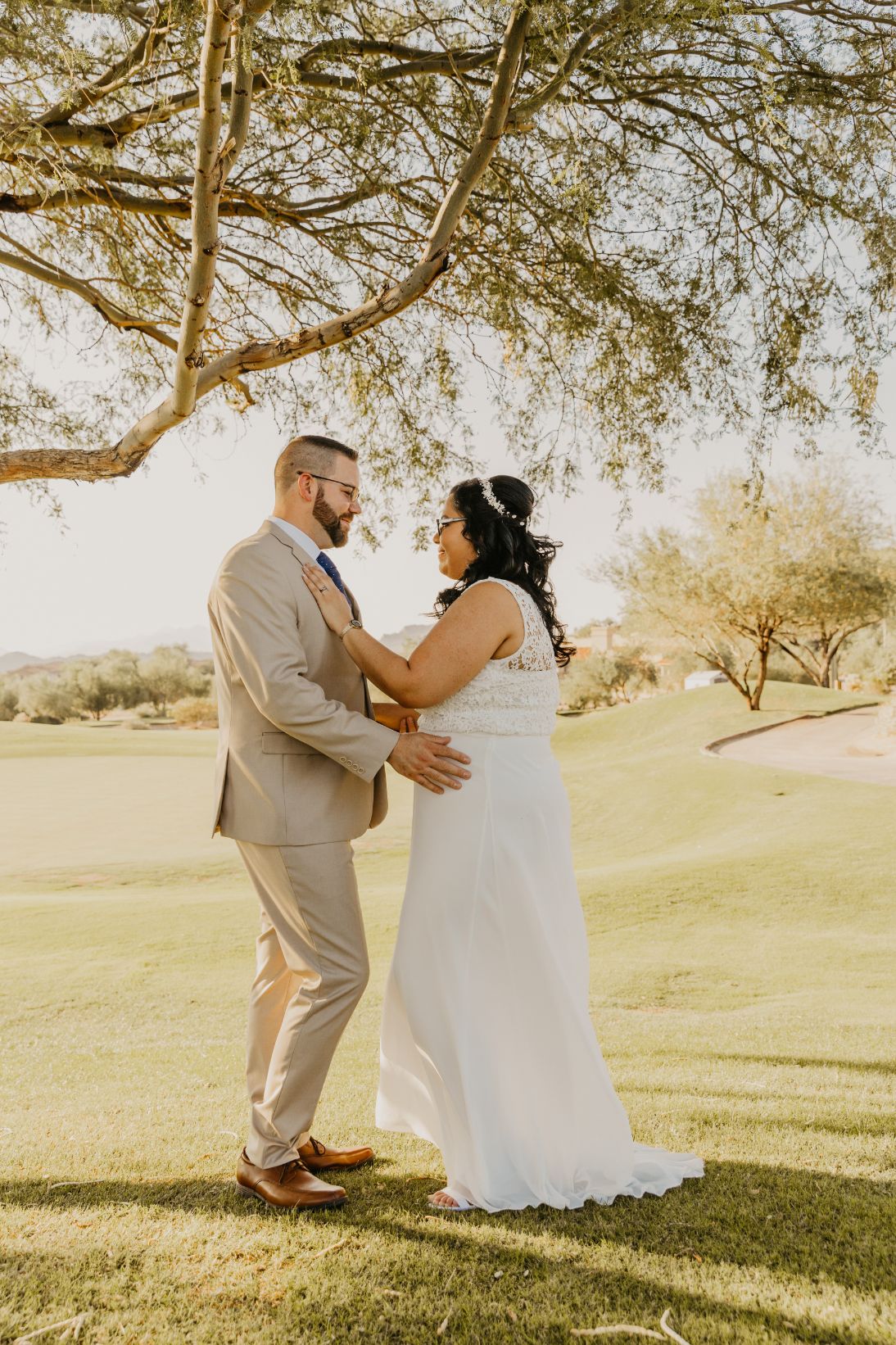 She planned to have a small intimate ceremony in Mesa, and then her bridal portrait photos at Las Sendas Golf Club, which was just down the street. The ceremony was planned for 5:30, and as an Arizona wedding photographer, I understand the lighting and heat challenges that can come with early/outdoor events in the summer. Luckily, we had some great weather, a little cooler than normal, and some light cloud coverage.