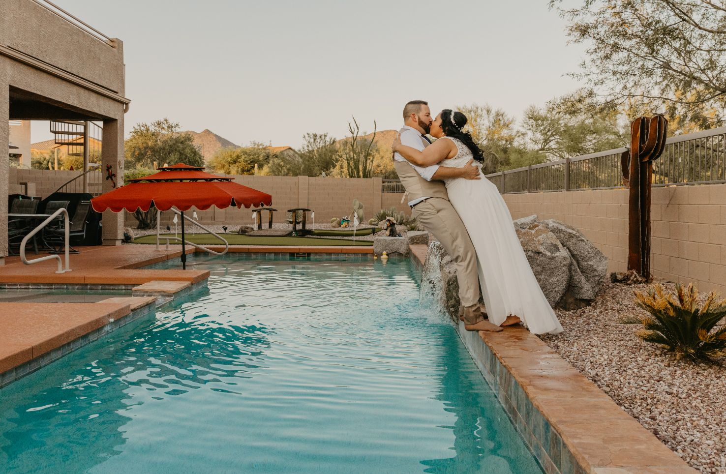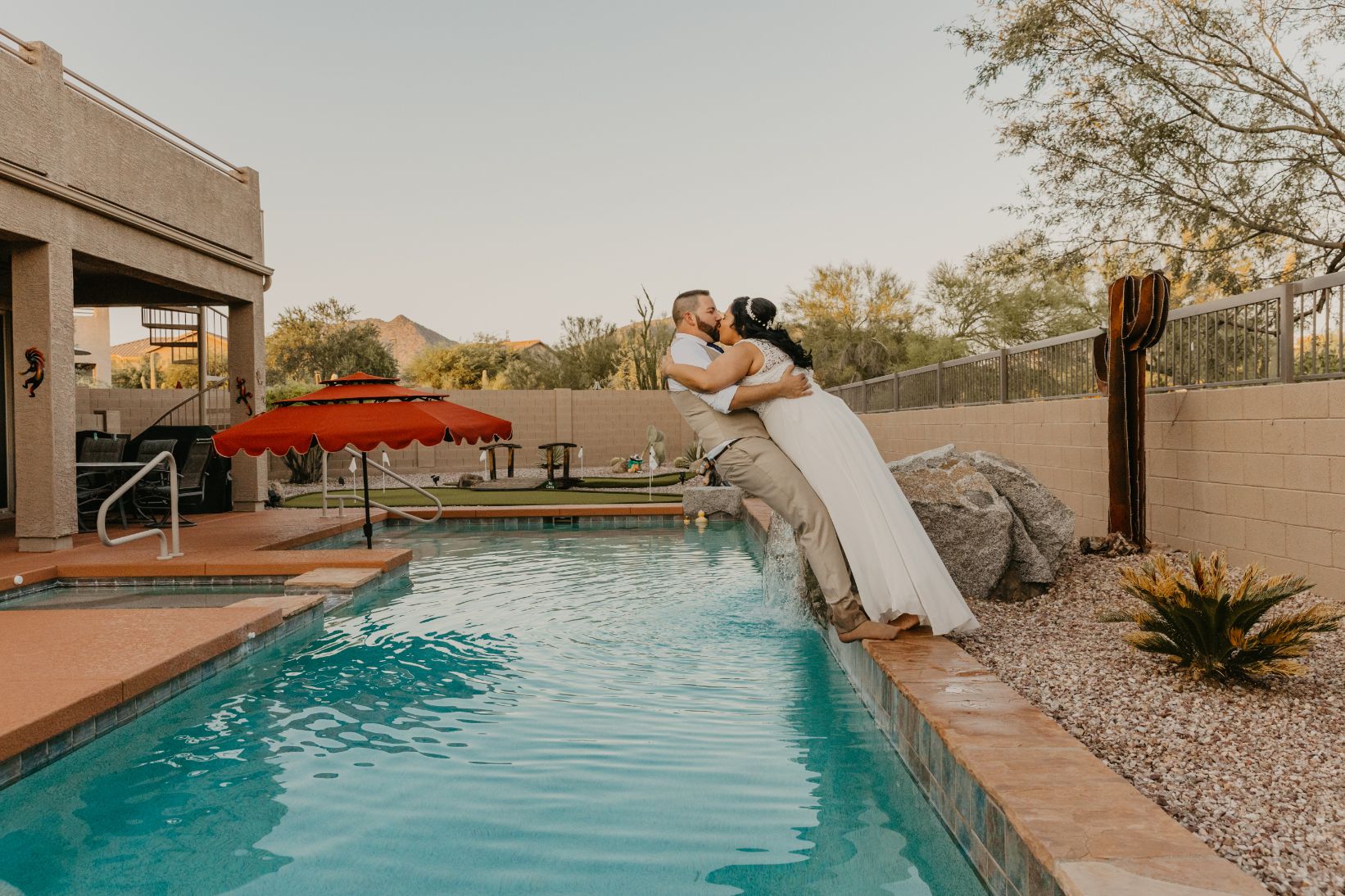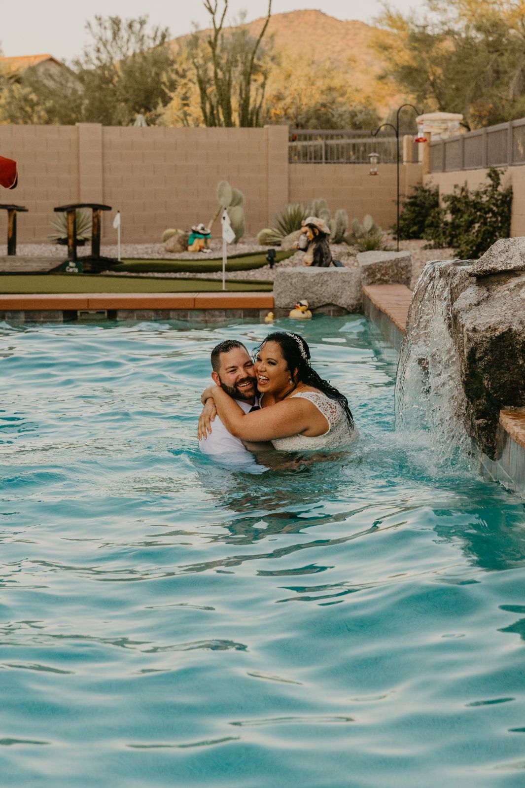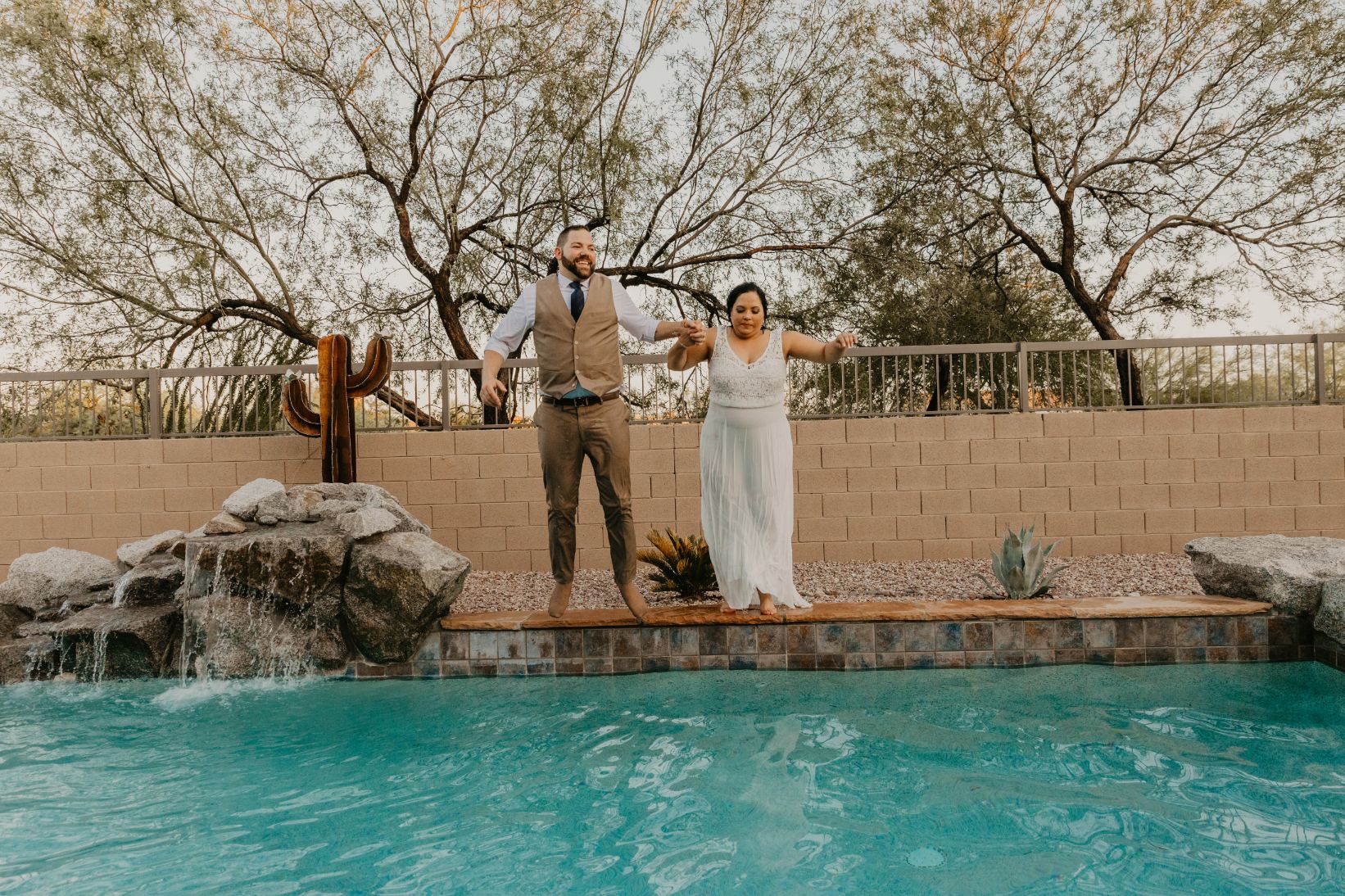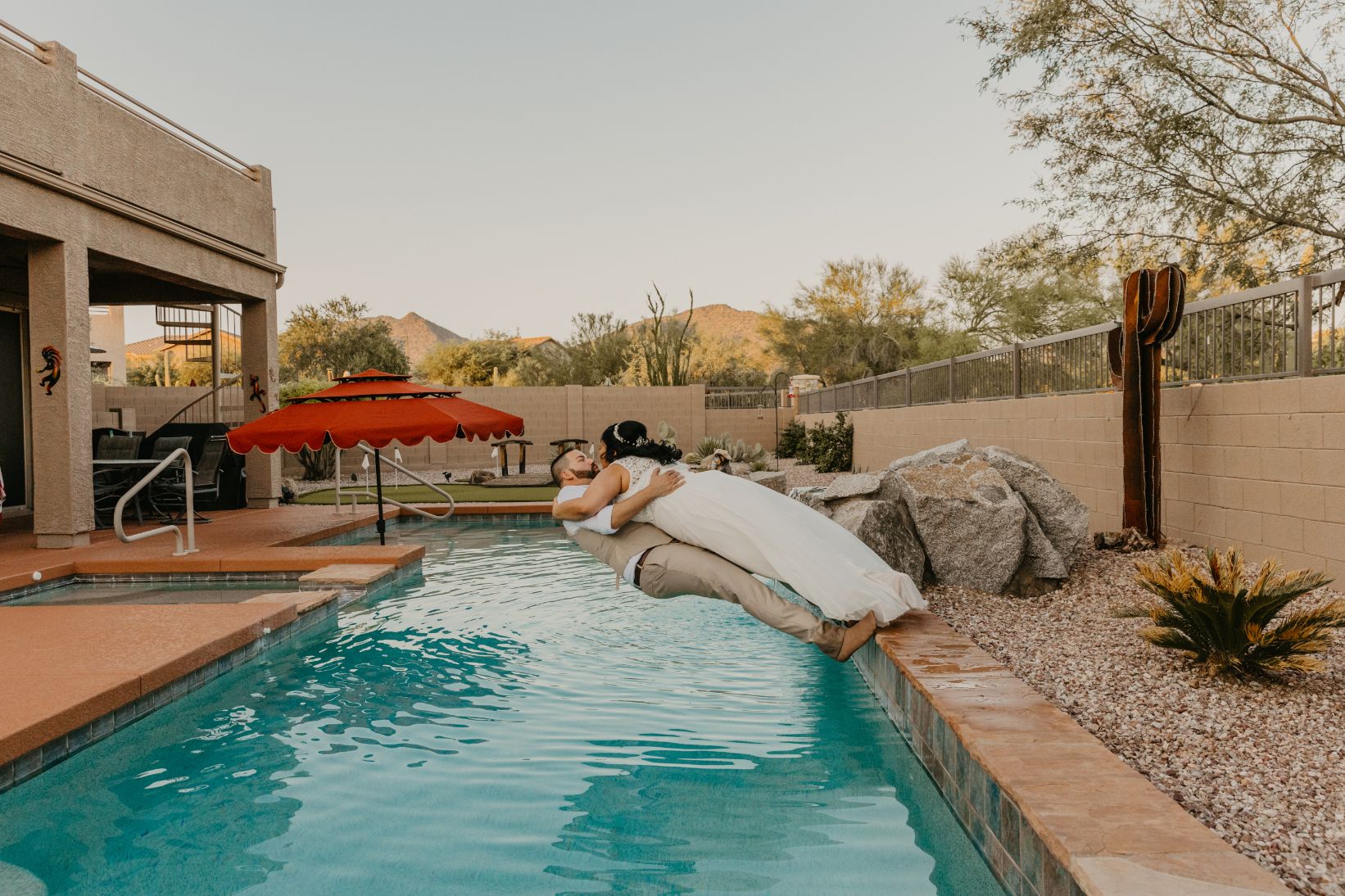 Lizdacely had one last request, and a little surprise for me. About a week prior to her wedding, she messaged me with something they had planned and really wanted to do. After we finished with their portraits, they wanted to take a few photos of them jumping into the pool. Um, yes! I’m all about outside the box ideas, and things that’ll make for great memories and photos of your wedding. Check out the photos below from her wedding, and when they literally “took the plunge”!