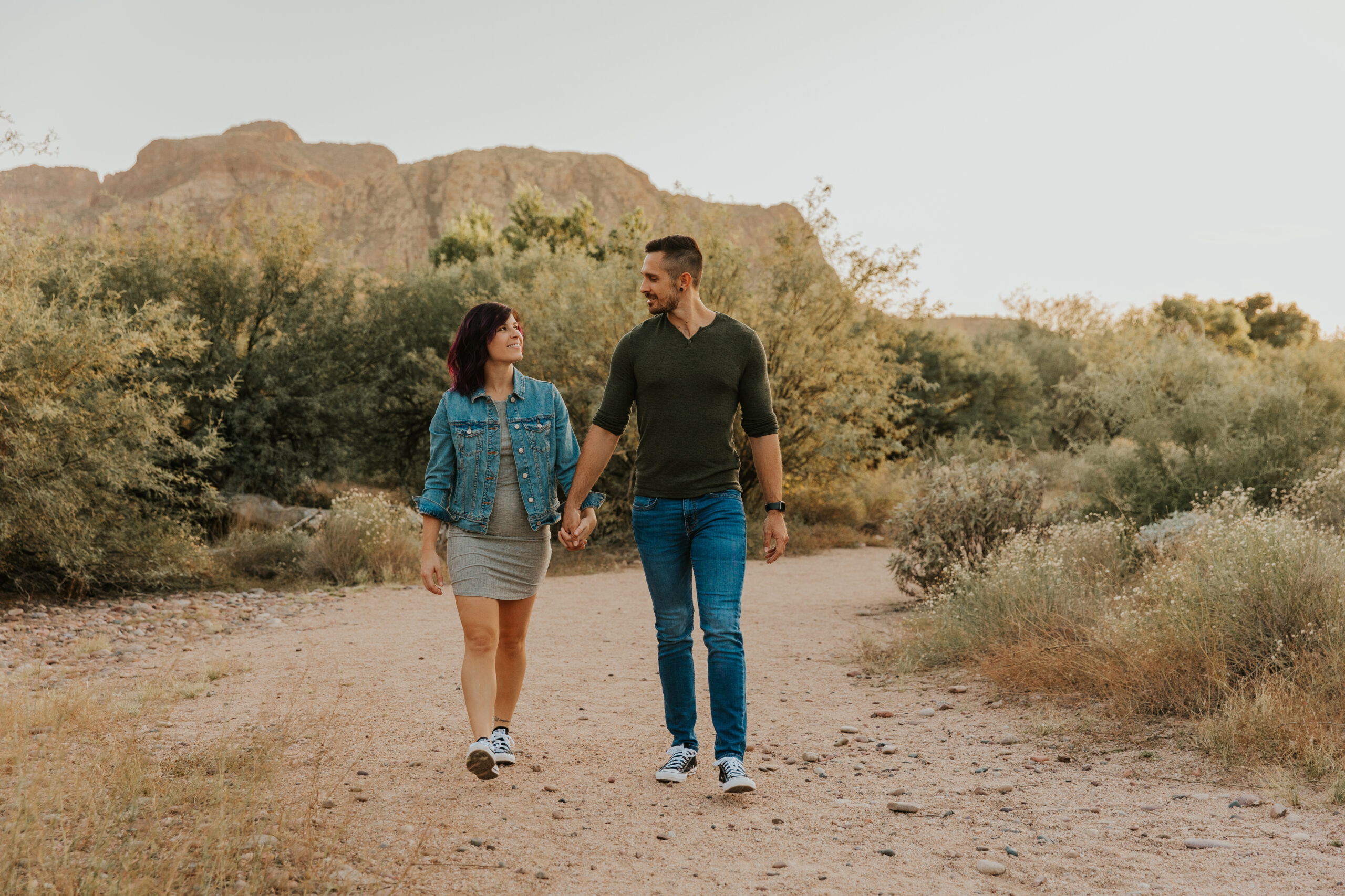 There are multiple areas along the Salt River that are great for engagement photos, including the recreation areas like Coon Bluff, Granite Reef, and Water Users (extra tip, sometimes you’ll even see the Wild Horses). Many of my clients like to schedule their photo session here because of the different vibe than the regular desert locations. And, the lighting just before sunset along the river can be amazing, even if there’s not a colorful sunset. Remember, use of the areas along the river require a Tonto Day Pass. These passes are about $8 and can be purchased at most gas stations, drug stores, and some rec areas. More information and where to purchase them here.
