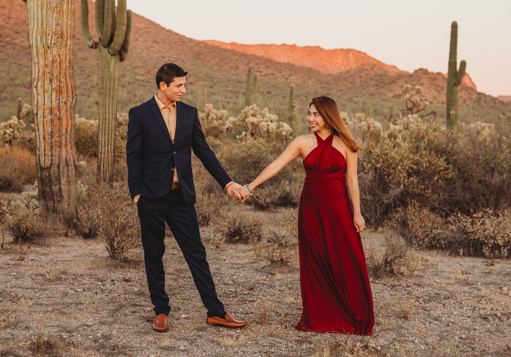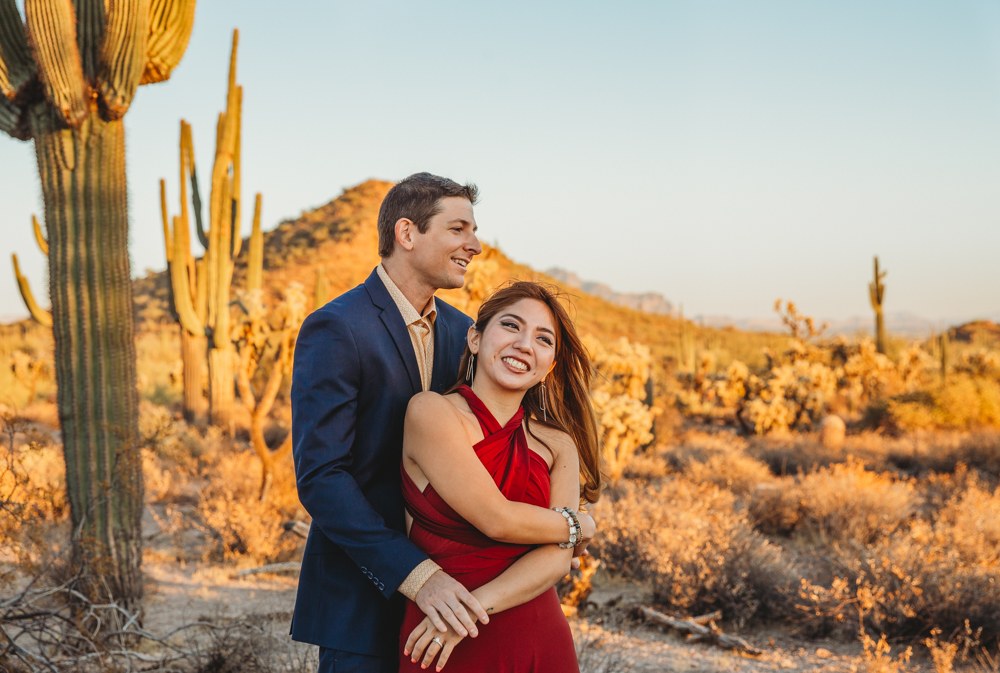 Jean recently found me by doing a Google search for engagement photographers in Phoenix, AZ. She was on a tight turnaround with her wedding in December, but we acted quickly to find a date that worked with her, her fiancé Scott’s calendar, and my availability I had left. We talked about what was important to her for her location, and we picked Usery Mountain Regional Park because of how beautiful the desert scenery is there. Just by talking with her through email, I was stoked to take her sunset engagement photos in Phoenix.
