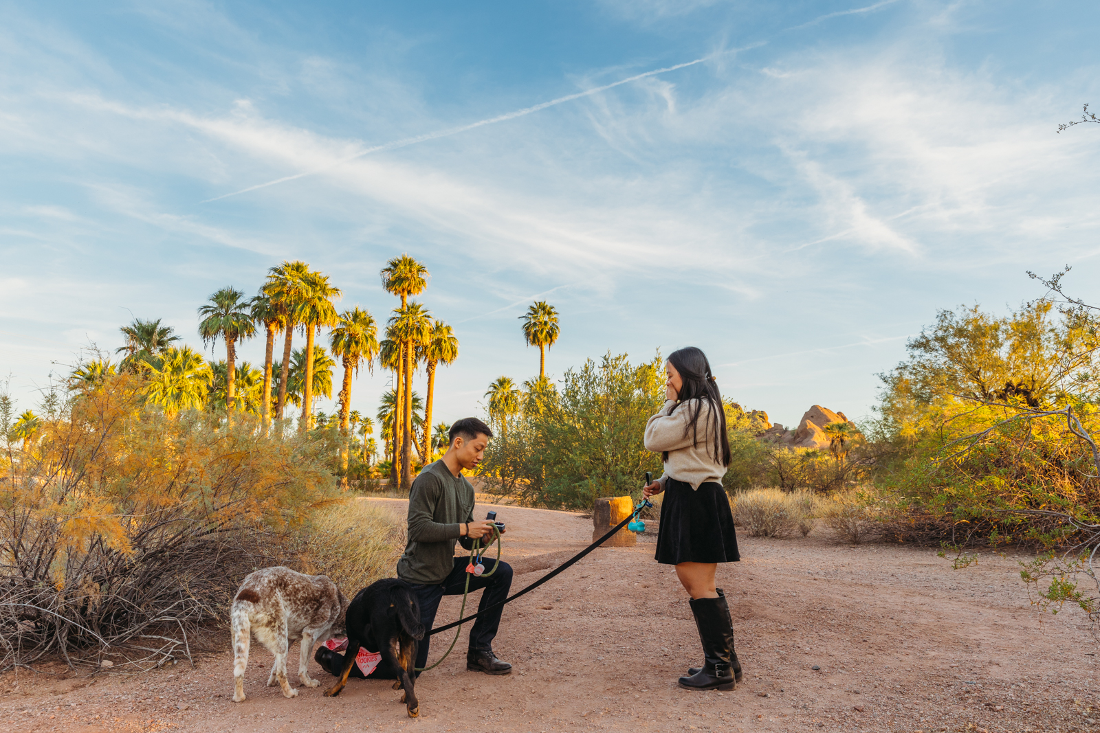 Now, imagine this: you’re all set up for a routine engagement shoot, but little does your partner know, you’ve secretly arranged for the big proposal to happen during the session. This was the setup for one of my favorite Tempe engagement sessions.